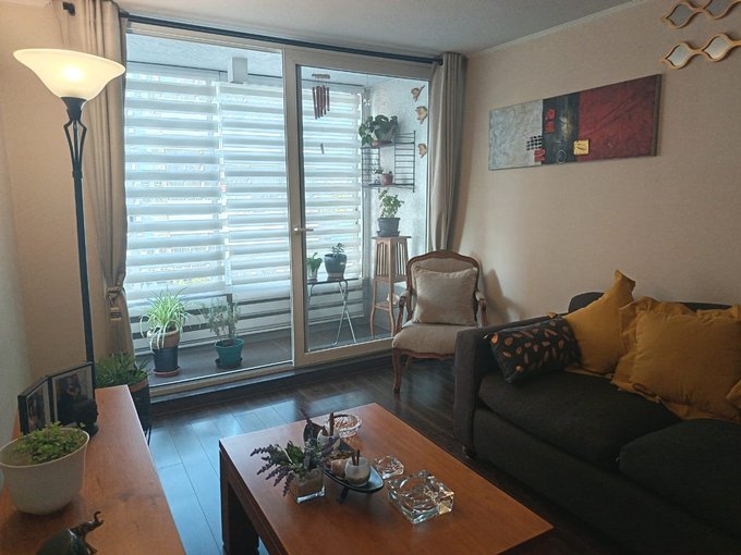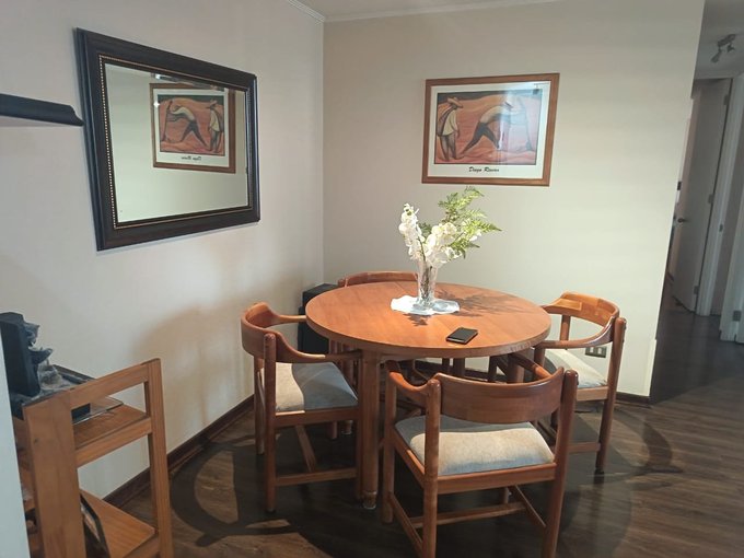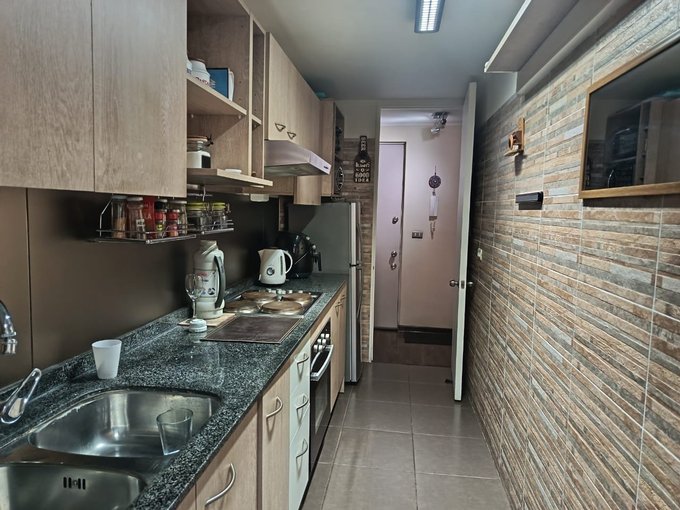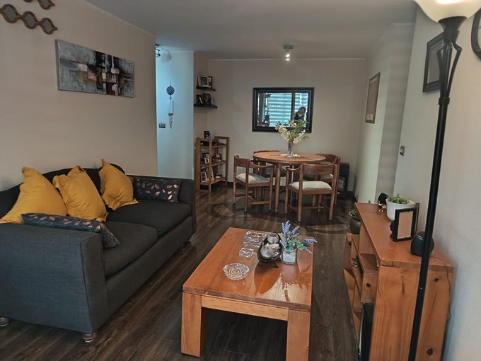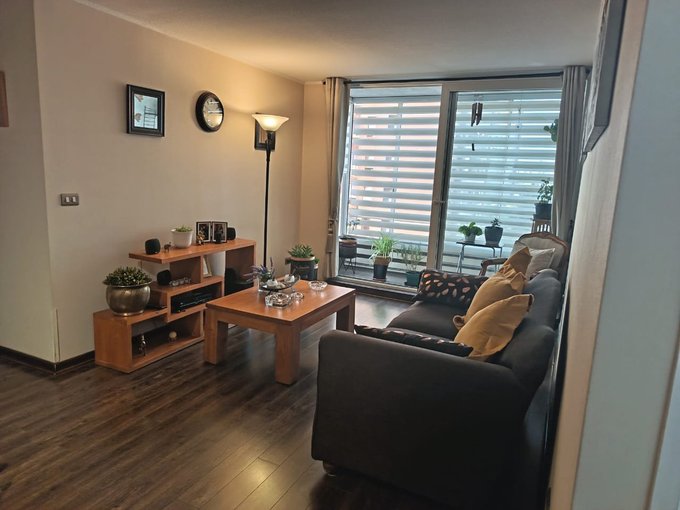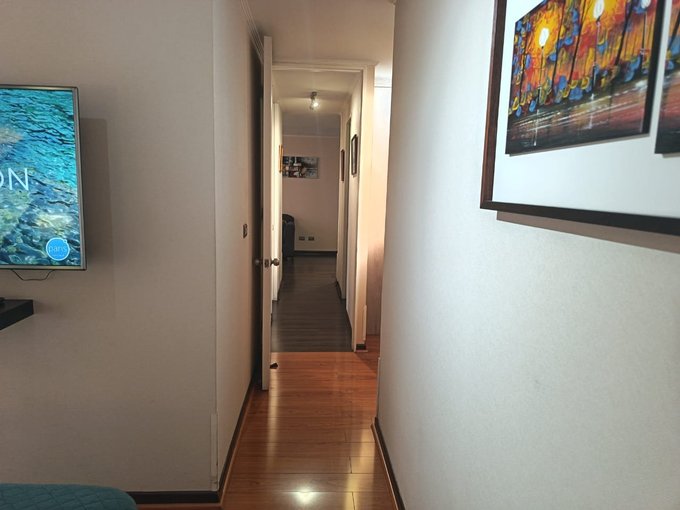 Vendo hermoso departamento ubicado en excelente sector de Macul, con muy buen acceso a servicios en general, colegio, Universidades, supermercado a una cuadra, farmacia 24 horas, bancos, centros de salud y restaurantes cercanos. El departamento cuenta con un amplio living comedor, con salida a una terraza que se encuentra cerrada, por lo que le proporciona mayor amplitud al espacio y muy bien decorado, una cocina larga totalmente amoblada y equipada con una encima, horno y campana eléctricos, con logia para instalar lavadora y secadora, y una impecable distribución. También cuenta con tres dormitorios, todos con closets, el principal en suite y con salida a un balcón, que entrega privacidad y un ambiente más libre en la habitación, con un baño en suitie con ventana al exterior y un amplio sector de vestidor con muchos closets, Un segundo dormitorio dónde actualmente tienen una oficina, con un escritorio en L, con un amplio clóset, sin embargo en ese dormitorio también cabe una cama de dos plazas cómodamente y un tercer dormitorio también con closet, en que cabe una cama de plaza y media, como la que se ve en la foto. En el pasillo tiene también un segundo baño completo, con tina y extractor. El departamento tiene piso foto laminado en todos sus espacios, salvo cocina, baños y balcones. Cuenta también con un estacionamiento en superficie- El edificio está ubicado en un Condominio consolidado, con casi nueve años de existencia, muy buena convivencia entre los vecinos, con dos salones de eventos disponibles, como así mismo, dos gimnasios, dos quinchos, y dos saunas. También cuenta con una piscina para la comunidad y una plaza con juegos infantiles para la primera edad, además de acceso controlado 24 horas, circuito cerrado de televisión y seguridad 24 horas. No te puedes perder la posibilidad de visitar.