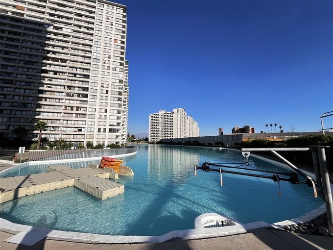 El departamente muy luminoso con vista privilegiada tiene: 2 dormitorios, 2 baños, Cocina full equipada con refrigerador, encimera, horno, campana y muebles, living comedor, estacionamiento y bodega, con un diseño moderno y amplios espacios su estado es como nuevo. tiene ademas una hermosa vista a la laguna desde su terraza y orientacion nor poniente