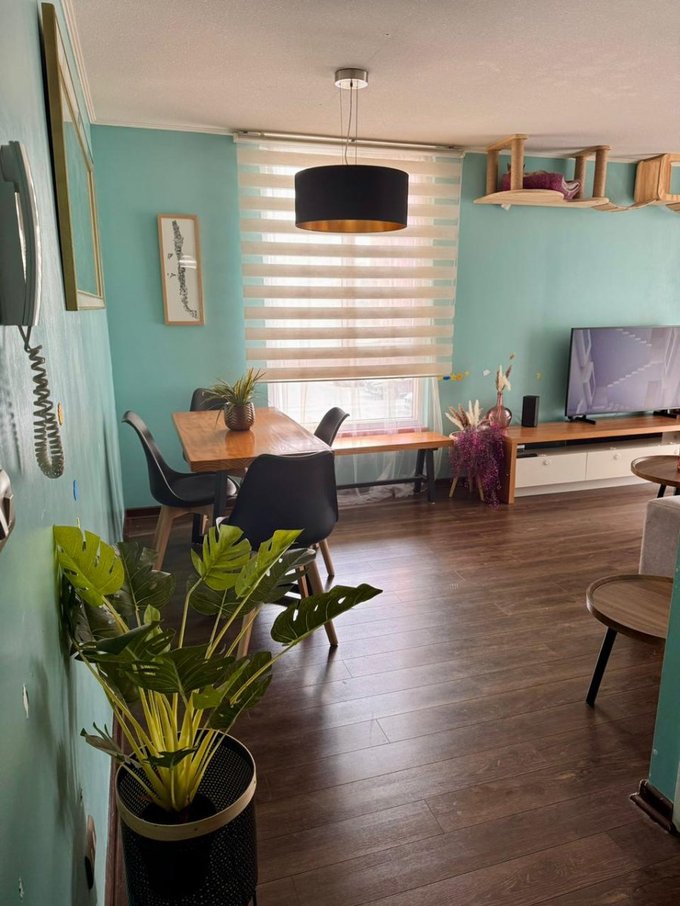 Se vende amplio departamento que cuenta con tres dormitorios grandes, el principal en suite y con amplia terraza de 10 m2 aproximadamente, con amplio vestidor y aire acondicionado, los dormitorios dos y tres también son grandes, cabe en ambos una cama de dos plazas, también tienen un closet grande cada uno y los tres dormitorios son alfombrados, en el dormitorio dos también hay aire acondicionado. El departamento tiene un pequeño hall de acceso, y separados los dormitorios del living comedor, hacia la derecha del acceso el hall y un gran closet para guardar chaquetas y también con amplios cubículos. Frente a la entrada está la puerta de la cocina que es bastante amplia, cuenta con abundantes muebles, una despensa, campana, encimera eléctrica, horno eléctrico, espacio para el refrigerador a la entrada y un mesón a todo lo largo de la cocina que facilita mucho las tareas cotidianas, Además al final de la cocina tiene espacio e instalación para la lavadora y secadora. Los dos baños son con tinas y extractor. El living comedor tiene salida a un balcón y también tiene aire acondicionado, El piso aquí y en el pasillo es flotante, y en la cocina y los baños piso cerámico. El edificio cuenta con piscina, quinchos, dos salones de eventos, dos gimnasios, y una plaza de juegos para niños de primera edad. Seguridad 24/7, circuito cerrado de televisión, acceso controlado. Además, el Condominio se encuentra a una cuadra del Supermercado Líder, con farmacias 24 horas a pasos, con acceso a locomoción colectiva a la puerta, con muchos colegios particulares y gratuitos en la zona, y con excelente acceso a servicios en general. En los próximos años con estación de metro a una cuadra lo que elevará mucho la plusvalía. NO dejes de visitar, es una excelente ubicación y muy buena plaza para vivir. Incluye estacionamiento y bodega en subterráneo y paga 115 mil de gastos comunes, más el consumo del agua caliente, que es por caldera.