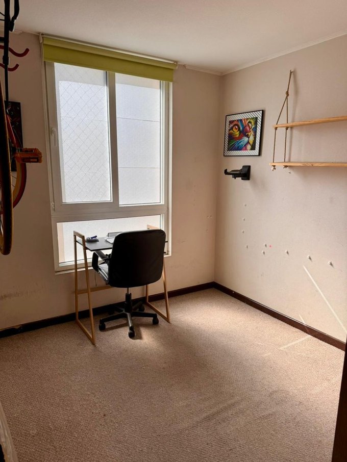 Se vende amplio departamento que cuenta con tres dormitorios grandes, el principal en suite y con amplia terraza de 10 m2 aproximadamente, con amplio vestidor y aire acondicionado, los dormitorios dos y tres también son grandes, cabe en ambos una cama de dos plazas, también tienen un closet grande cada uno y los tres dormitorios son alfombrados, en el dormitorio dos también hay aire acondicionado. El departamento tiene un pequeño hall de acceso, y separados los dormitorios del living comedor, hacia la derecha del acceso el hall y un gran closet para guardar chaquetas y también con amplios cubículos. Frente a la entrada está la puerta de la cocina que es bastante amplia, cuenta con abundantes muebles, una despensa, campana, encimera eléctrica, horno eléctrico, espacio para el refrigerador a la entrada y un mesón a todo lo largo de la cocina que facilita mucho las tareas cotidianas, Además al final de la cocina tiene espacio e instalación para la lavadora y secadora. Los dos baños son con tinas y extractor. El living comedor tiene salida a un balcón y también tiene aire acondicionado, El piso aquí y en el pasillo es flotante, y en la cocina y los baños piso cerámico. El edificio cuenta con piscina, quinchos, dos salones de eventos, dos gimnasios, y una plaza de juegos para niños de primera edad. Seguridad 24/7, circuito cerrado de televisión, acceso controlado. Además, el Condominio se encuentra a una cuadra del Supermercado Líder, con farmacias 24 horas a pasos, con acceso a locomoción colectiva a la puerta, con muchos colegios particulares y gratuitos en la zona, y con excelente acceso a servicios en general. En los próximos años con estación de metro a una cuadra lo que elevará mucho la plusvalía. NO dejes de visitar, es una excelente ubicación y muy buena plaza para vivir. Incluye estacionamiento y bodega en subterráneo y paga 115 mil de gastos comunes, más el consumo del agua caliente, que es por caldera.