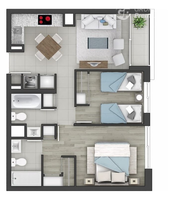 Terminaciones Premium: Pisos de porcelanato en áreas sociales, piso flotante en dormitorios y baños con shower door y tina.