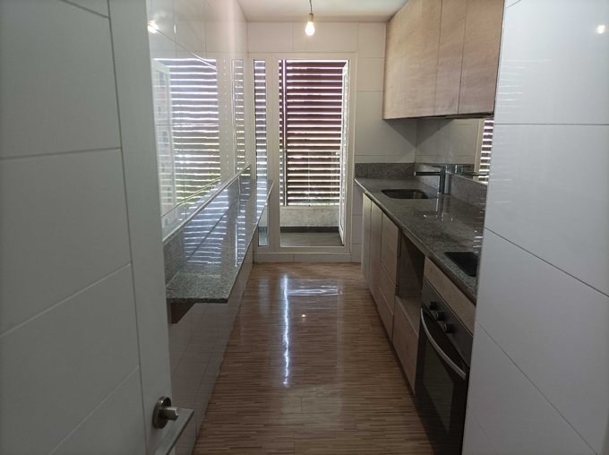 - Cocina equipada con encimera, horno empotrado y campana todo eléctrico.