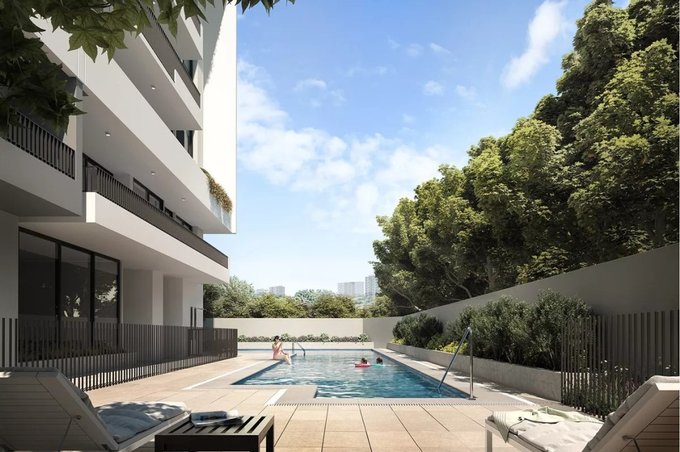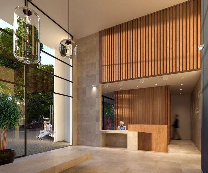 EDIFICIO consta de 18 pisos y 3 subterráneos, en los que se contemplan 262 departamentos, 134 bodegas, 242 estacionamientos y 42 bicicleteros