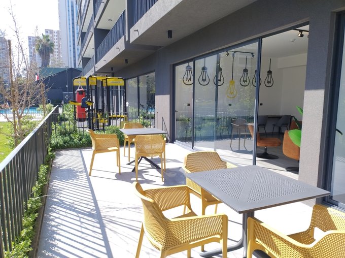 -. El edificio esta full Equipado con: conserjería 24/7, CCTV, gimnasio, lavandería, sala cowork, bodega e-commerce, salon gourmet, baños, quinchos, áreas verdes, juegos infantiles, piscina, bicicleteros y estacionamiento de visitas.