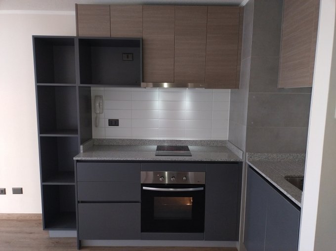 - Cocina Integrada full equipada con: cubierta de granito, Vitroceramica de 2 platos, campana y horno eléctrico.