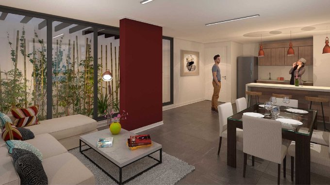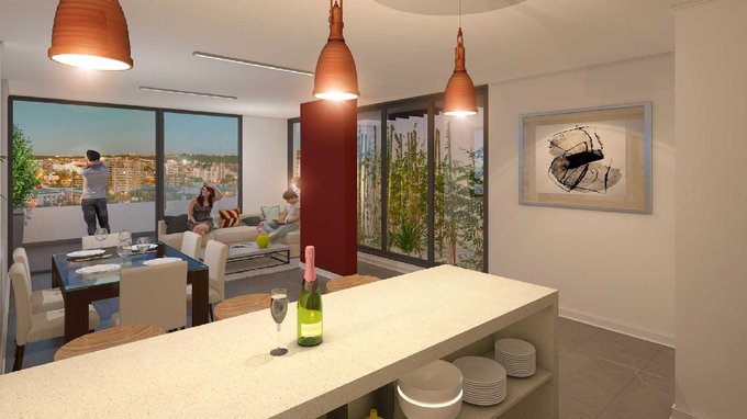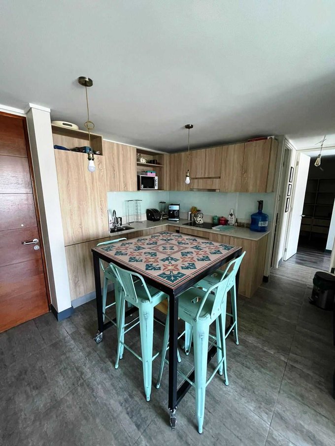 La propiedad cuenta con dos dormitorios, uno de ellos en suite más un segundo baño. Cocina full eléctrica integrada al living comedor y equipada con encimera, horno, extractor de aire retráctil, despensa, espacio para lavadora e incluye refrigerador empotrado. Gran capacidad de almacenaje. Terraza espaciosa con baranda de cristal.