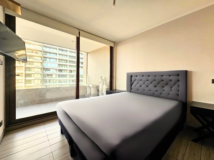 Consta de 1 habitación, 1 baño con conexión a lavadora, 1 estacionamiento en subterráneo y 2 bodegas. Cocina integrada con encimera eléctrica de vitrocerámica, mesón de sileston beige. Agua caliente por termo, Amplia terraza con vista despejada hacia el oriente. 37 m2 totales y 30 m2 útiles. Piso 16. Gastos comunes de $100.000 aprox. Contribuciones por $40.000. Año de construcción 2019.