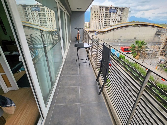 - 50m2 útiles y 10m2 de terraza en living y dormitorios, con orientación Sur y vista hacia edificio comercial Autopista Vespucio (gente solo en horario de oficina)