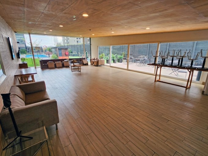 Departamento ubicado en piso 6 y orientación Sur. Condominio de año 2017, cuenta con piscina, quincho en azotea con vista panorámica, salón para eventos, gimnasio, sala para niños, estacionamientos para visitas y seguirdad 24/7.