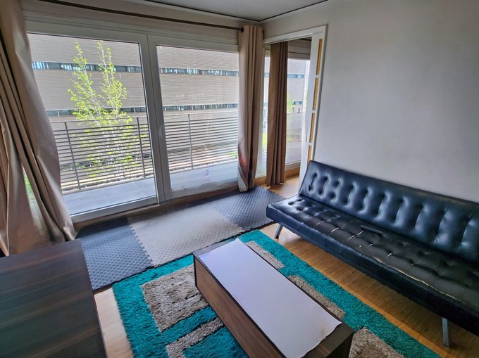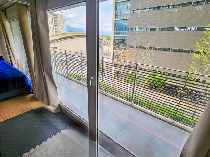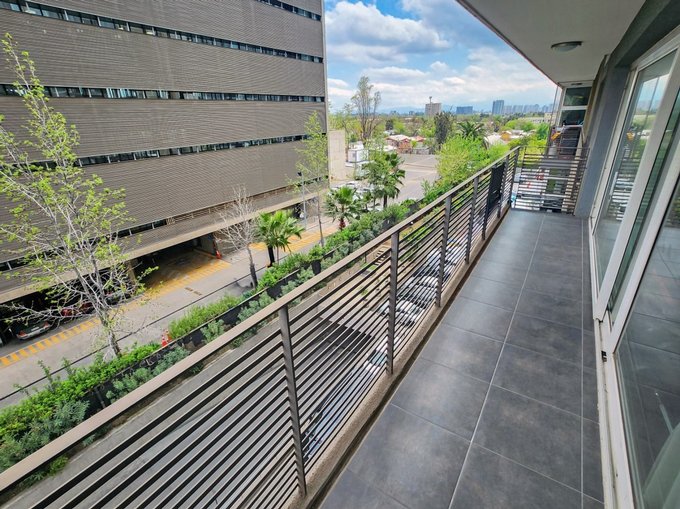 - 50m2 útiles y 10m2 de terraza en living y dormitorios, con orientación Sur y vista hacia edificio comercial Autopista Vespucio (gente solo en horario de oficina)
