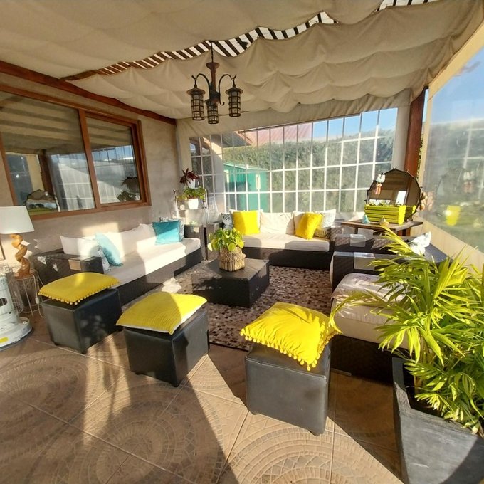 La terraza tiene 40 m2 y el quincho ubicado al fondo de la propiedad tiene las mismas dimensiones, parrilla en obra, junto a un baño exterior.