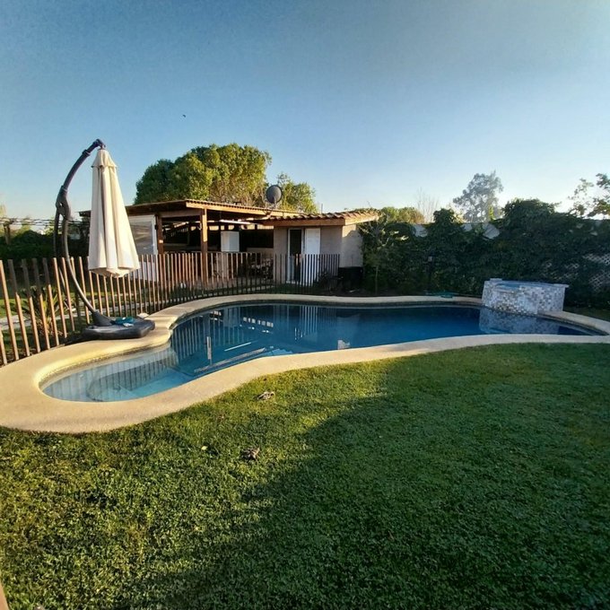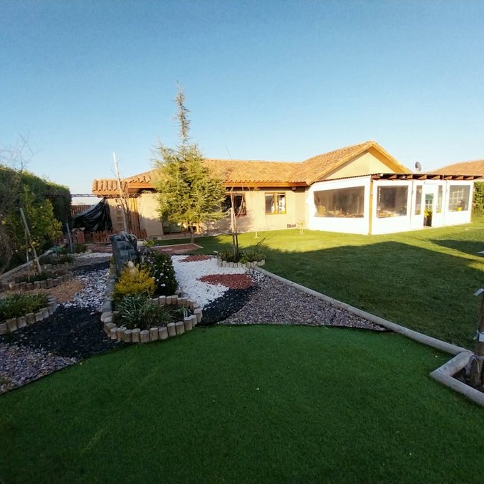 Casa de un piso de 160 m2 construidos, en terreno de 1.030 m2, ubicada en Condominio Bosques de Chena el cual cuenta con piscina y club house.