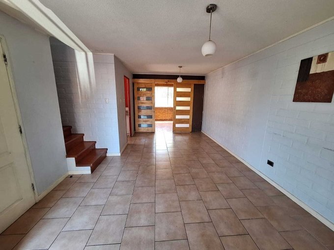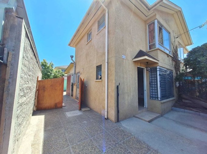 Propiedades Cadix Spa Vende hermosa casa de 2 pisos, sólida completa, emplazada en barrio residencial del Abrazo de Maipú, entre las calles Jorge Guerra y Esdras. Consta de 4 dormitorios (uno pequeño), living y comedor integrados, cocina amoblada y equipada, 2 baños completos, estacionamiento para 2 vehículos, ante jardín y patio interior.