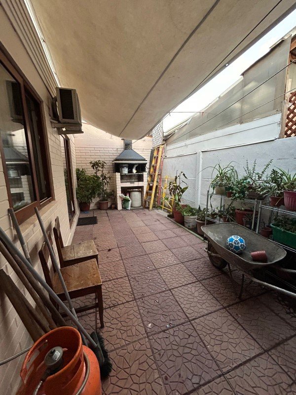Amplio estacionamiento techado, espacio para 3 vehículos, cuenta con quincho, terminando en la instalación de una bodega