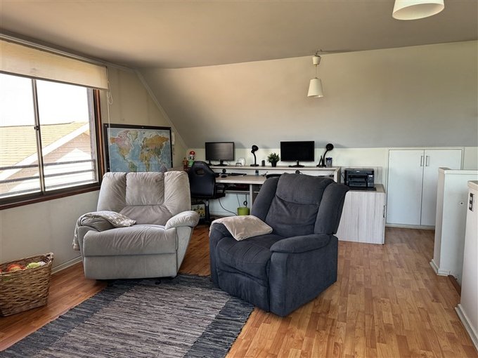 Sala de estar o estudio en el tercer piso con vista hacia la plaza y orientación oeste