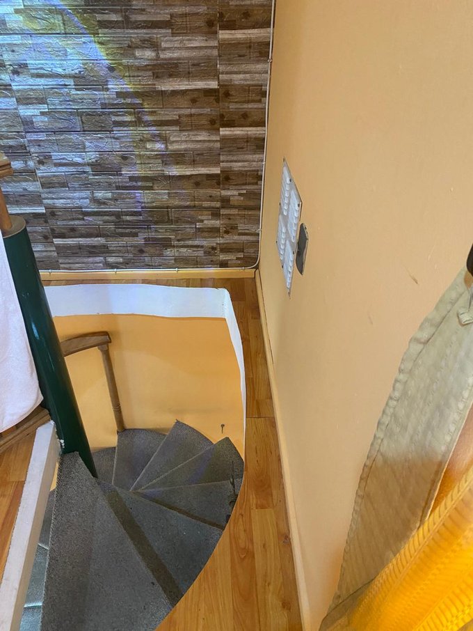 Planta baja: Amplio living-comedor, cocina con comedor diario, 1 baño, estacionamiento con cobertizo, patio posterior, 3 bodegas, antejardín, escala en forma de caracol.
