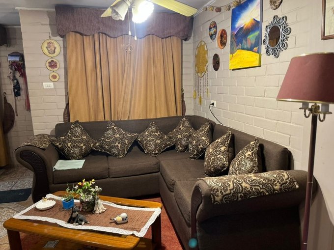 Cuenta con ante jardín, espacio para estacionar 1 vehículo y si se modifica, podrían caber 2 autos más patio interior techado con quincho.