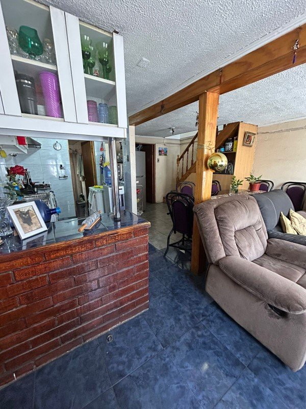 En Maipú, se encuentra esta acogedora casa de dos pisos, en venta por $120,000,000. Con una construcción de 85 m2 ubicada en Pasaje Kivi, esta propiedad cuenta con 4 habitaciones, 1 baño y estacionamiento con capacidad para 3 vehículos. Además, tiene una bodega para almacenamiento adicional. En la entrada tiene un hermoso trabajo en el cobertizo, estilo colonial. Uno de los dormitorios tiene aire acondicionado, tal como se muestra en las fotografías.