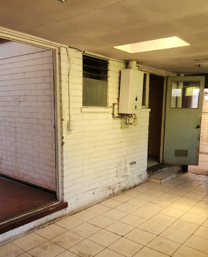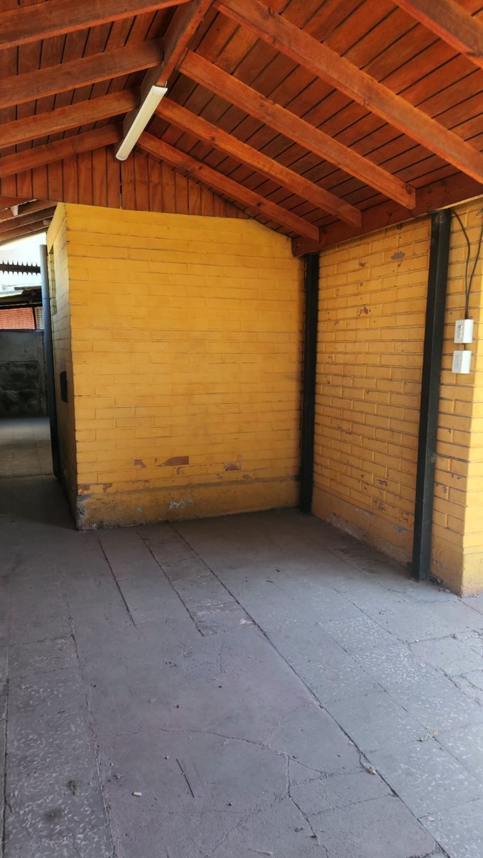 Patio lateral techado con área de lavadero.