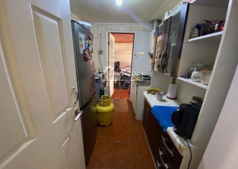 Cocina semi-amoblada con piso cerámica, equipada con un mueble de cocina, calefón y conexión para cocina a gas