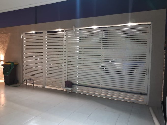 Entorno cerrado, portón vehicular y entradas peatonales automatizadas.