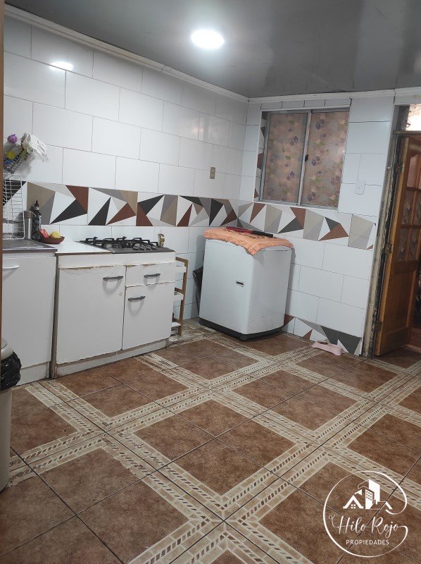 Amplia cocina con espacio y conexiones para lavadora, refrigerador y otros artefactos eléctricos.