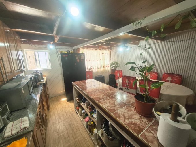 Gran cocina amoblada con excelente distribución y vigas a la vista