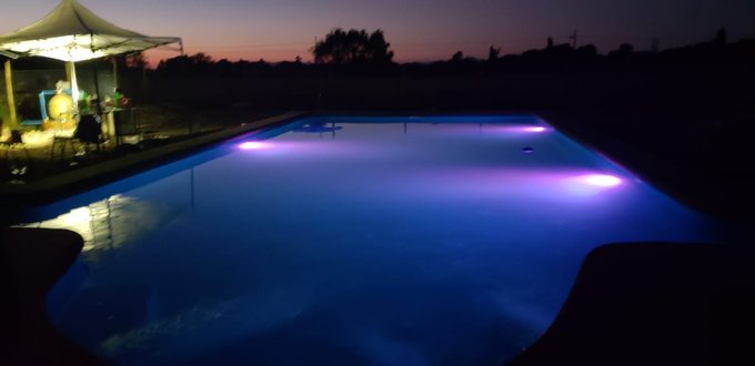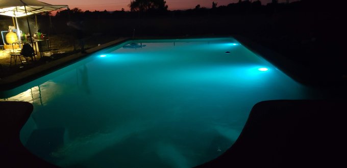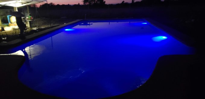 💦 Extras: Piscina iluminada en funcionamiento