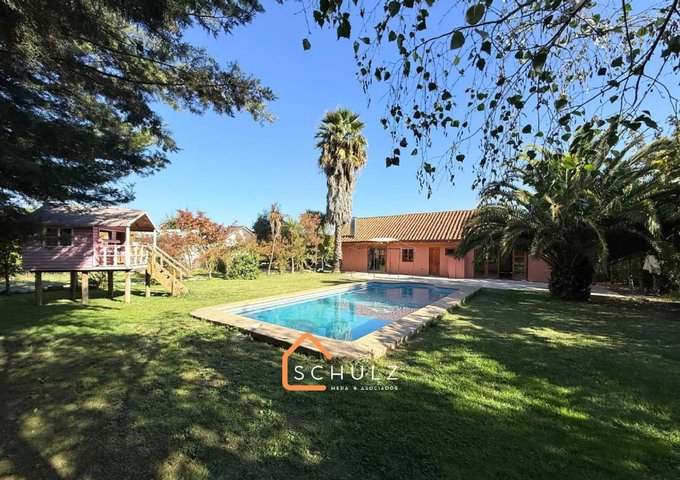 La propiedad considera una sólida casa estilo colonial de 205 m construidos, emplazada en un terreno de 2.702 m, completamente plano, con amplias áreas verdes, abundante vegetación y un pequeño bosque que entrega privacidad y tranquilidad.