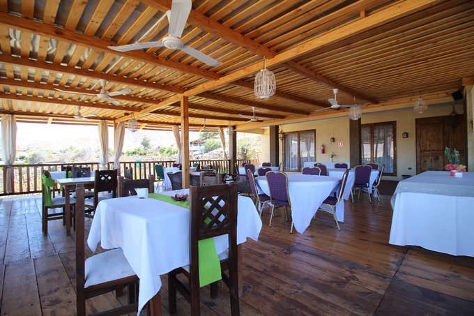 Hall de acceso al hotel, baños preparados para minusválidos, además de 3 baños externos, dos de ellos divididos para hombres y mujeres, 7 baños públicos salas de conferencia con aire acondicionado para 100 personas, comedor para 60 personas, quincho, terrazas techadas con hermosa vista, habilitable como comedor al aire libre para 40 personas, gran piscina.