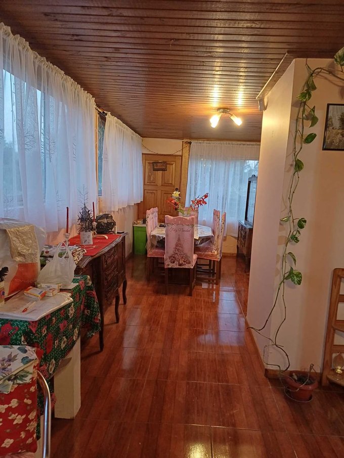 Vendo parcela con casa de 2 pisos en Sector muy tranquilo. Consta de corredor techado y con cerámica, 4 dormitorios con closet empotrado, baño, cocina, amplio comedor con cocina a leña, living grande, sala de estar, terraza. Bodega, leyera, etc. Cercano a colegios, supermercados, comisaría, a 20 minutos de San Carlos. Terreno plano.