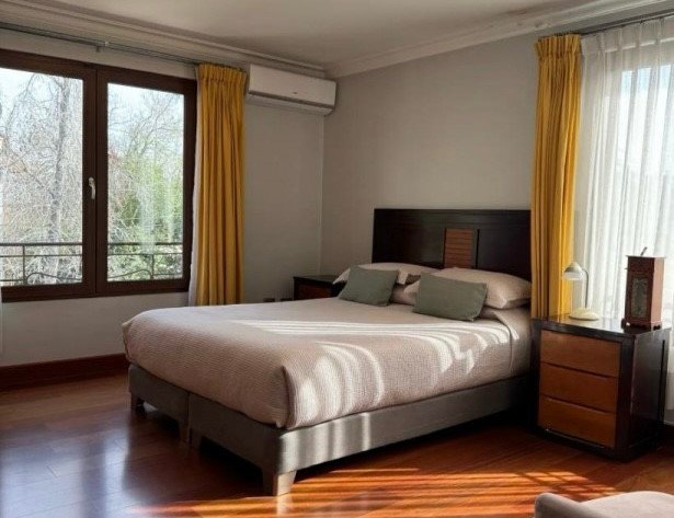 Hermosa casa sólida de tres pisos en venta en la comuna de Ñuñoa, Santiago, ubicada en condominio cerrado con acceso controlado, completamente remodelada y en excelente estado de mantención, ideal para familias que buscan seguridad, amplitud y alto estándar de vida. La propiedad cuenta con 4 dormitorios amplios (principal en suite), 4 baños remodelados con cerámicas, duchas vidriadas y mobiliario moderno, amplios espacios comunes, living-comedor y cocina tradicional remodelada, amoblada y equipada con campana, horno eléctrico y cocina a gas. Dispone de patio interior con lavadero, espectacular quincho enchapado en roble con gran horno a leña, asador amplio, sistema de proyector y sonido, y vidrieras correderas con conexión al patio principal, además de piscina en obra y patio exterior. Incluye 2 estacionamientos, 2 pisos principales más una amplia mansarda con baño, sistema de seguridad con cámaras, registro, iluminación, electrificación perimetral y alarma en puertas y ventanas, ventanas con paneles térmicos, 2 calefactores a gas natural y pisos de madera adheridos al radier en toda la casa, incluyendo la escalera. Superficie total: 360 m2. Contribuciones: $325.701.- trimestral. Valor de venta: 16.100 UF.