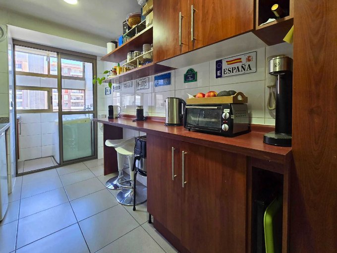 Cocina tradicional: Totalmente amoblada, con encimera de 4 platos eléctrico y horno empotrado eléctrico, campana con extractor de aire y espacio para lavavajillas.