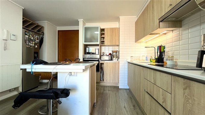 - Cómodo living y comedor, con cocina integrada, con mesón isla central, muy luminoso, cómodo y amplio, con salida a exquisita terraza, con vista sur