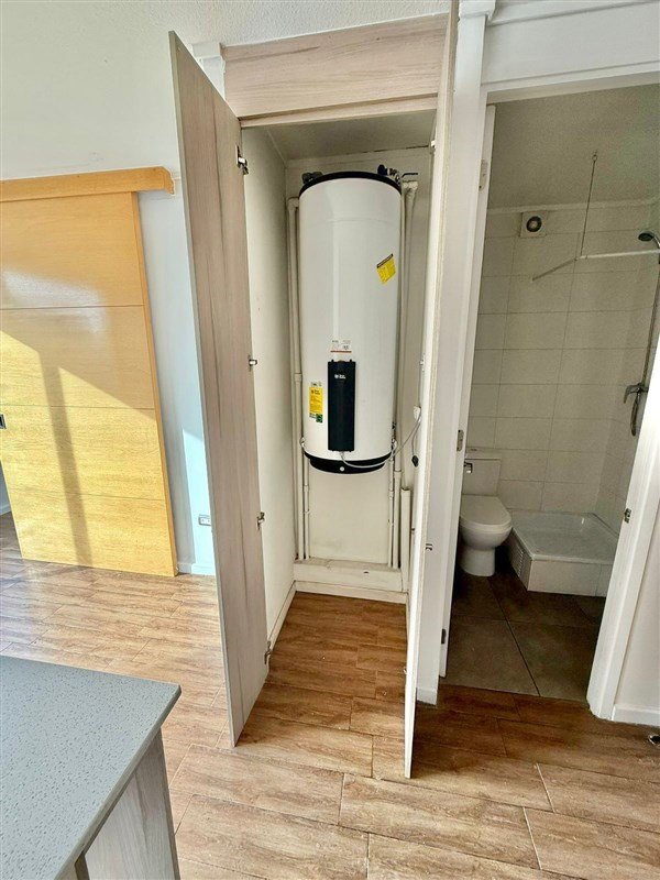 El departamento fue construido en 2018 y está en buen estado de conservación. Su distribución es moderna, con un living luminoso y una cocina americana equipada con cubierta de cuarzo, encimera eléctrica, horno y muebles en excelente condición. El dormitorio principal cuenta con baño en suite y el segundo dormitorio posee espacio para colocar una cama de 1 plaza o puede ser usado como escritorio. La propiedad también dispone de conexión para lavadora, ubicada en un closet empotrado junto al termo eléctrico, que abastece el agua caliente.