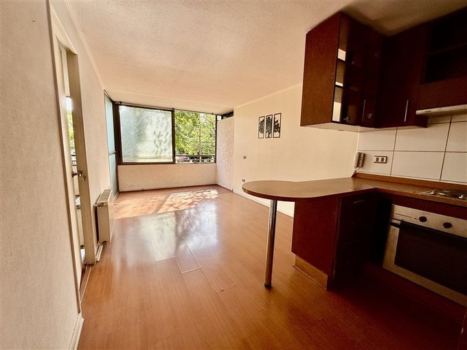Cómodo y luminoso departamento de 38 m, con orientación poniente, ubicado en un sector muy bien conectado de Ñuñoa. La amplia terraza fue cerrada, lo que permitió ampliar los espacios del living y del dormitorio, logrando una distribución más cómoda y funcional.