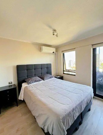 Amplio departamento, cuenta con una habitación en suite con aire acondicionado, un baño completo, conexión para lavadora, cocina americana equipada con encimera de 2 hornillas de vitrocerámica, mesón de granito, campana y horno eléctrico. Living comedor con salida hacia una amplia terraza de 5 m2 con vista despejada, ventanas termopanel y piso de porcelanato en living y pasillos. Gastos comunes $115.000 Aprox.