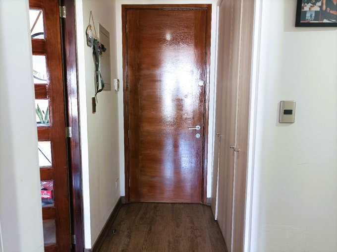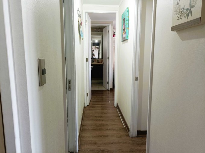- Hall de acceso, con puertas de madera que separan el living comedor con los dormitorios.