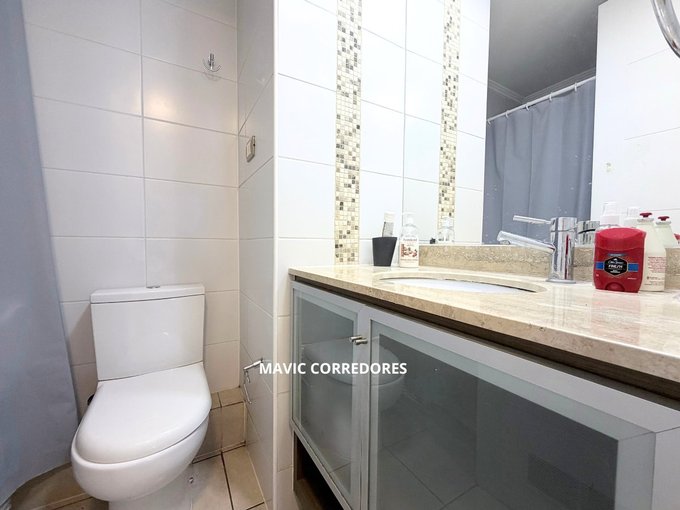 El edificio cuenta con variados espacios comunes: piscina, juegos infantiles, gimnasio, lavandería, jardines, quinchos, sala de uso múltiple, estacionamientos de visita y seguridad 24/7.