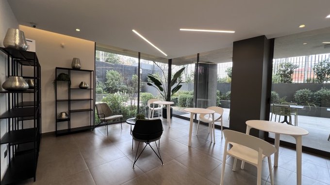 Edificio moderno con áreas comunes bien mantenidas.