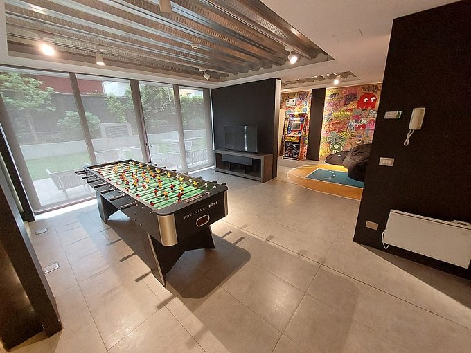 Condominio equipado con áreas verdes, piscina, sala de eventos, gym, conserje las 24 horas, bicicletero, cámaras de vigilancia y estacionamientos para visitas, parque infantil, quinchos y salón de juegos infantil y de adultos.