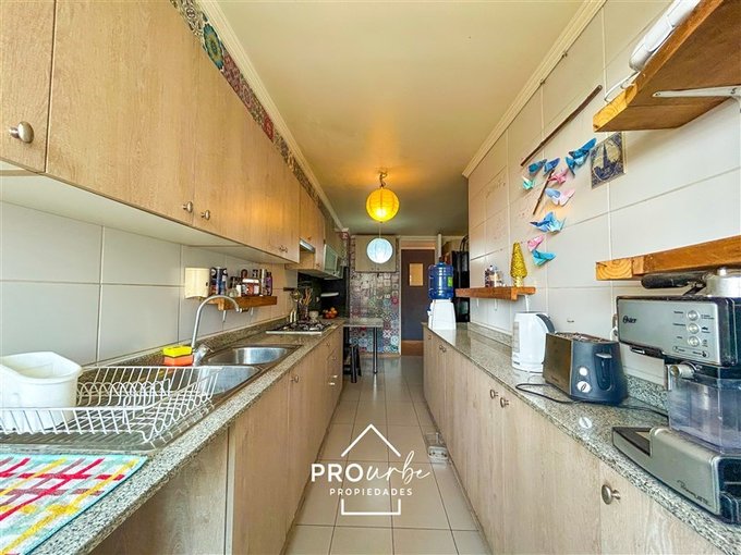 - Cocina amoblada con cubierta de granito, cocina encimera a gas, horno eléctrico. Con comedor de diario y logia separada