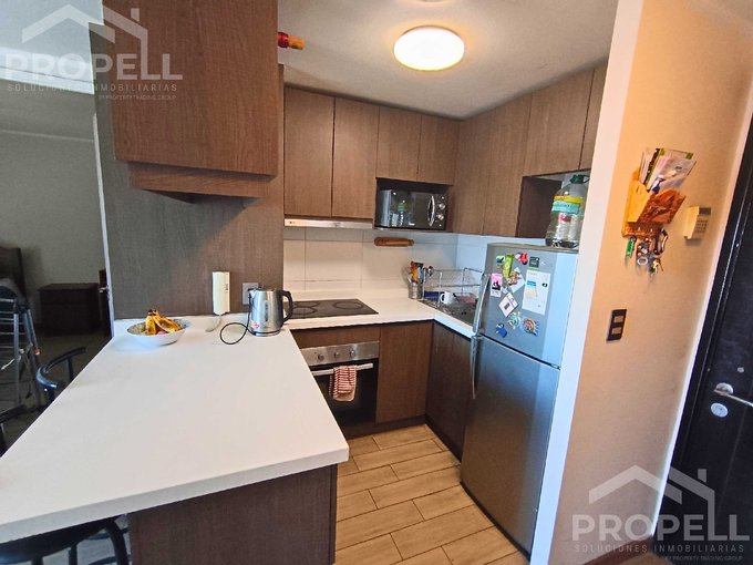 -Cocina americana amoblada y equipada con encimera, horno y campana