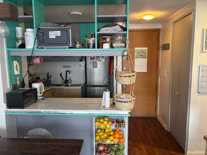 Living comedor juntos con salida a terraza vista oriente, cocina americana con muebles y encimera renovada, dormitorio principal en suite ampliado hacia la terraza, walk in closet remodelado, segundo dormitorio amplio, baño de visita completo. Bodega de buen metraje. Sin estacionamiento.
