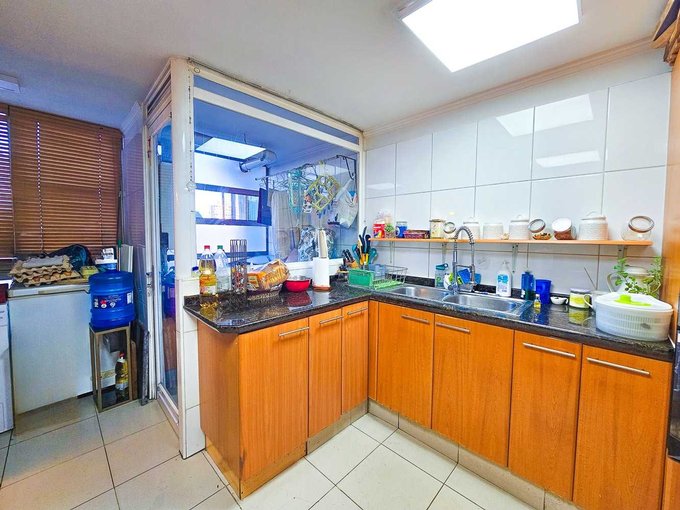 La cocina independiente, completamente equipada, cuenta con logia y despensas, pensadas para facilitar la vida diaria. La calefacción central y la orientación sur aseguran un ambiente templado durante todo el año, mientras que el amplio hall de acceso y las generosas dimensiones interiores crean una verdadera sensación de hogar.