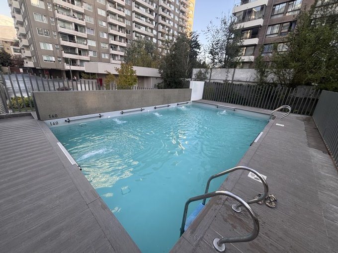 El edificio cuenta con salón social, piscina y quincho.