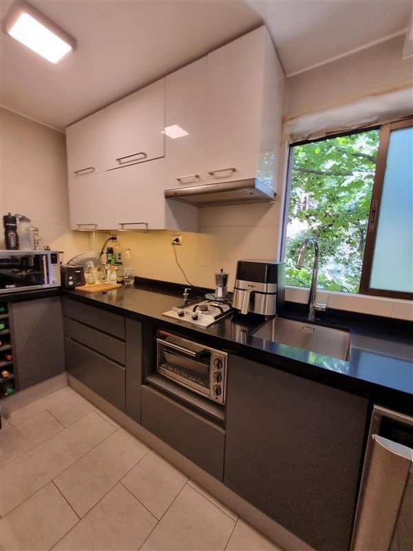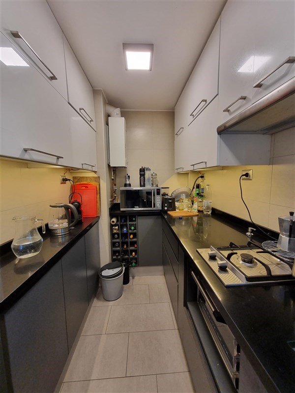 Dpto se remodeló y se abrió la cocina quedando semi integrada. Cuenta con encimera a gas, horno empotrado, muebles de almacenaje, campana.