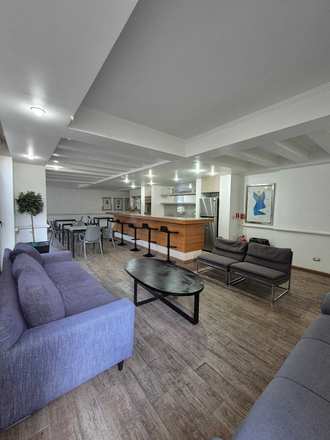 Cuenta con espacios comunes bien cuidados y aseados como salón gourmet (salón de eventos con cocina), gimnasio, áreas verdes, juegos para niño, piscina.