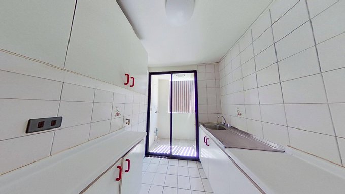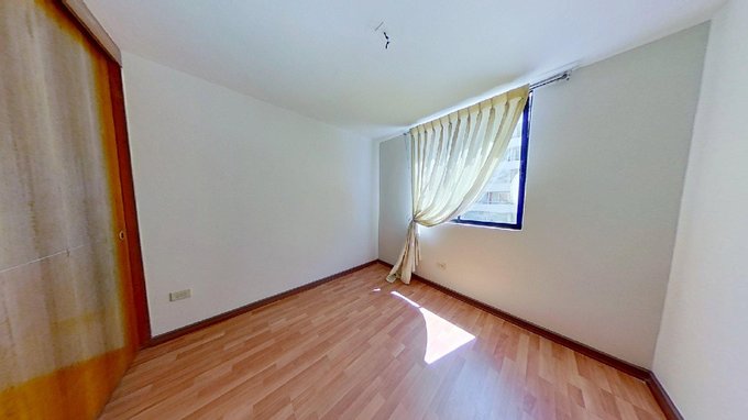 El departamento cuenta con tres dormitorios, todos con clóset dentro. Existe un armario en el pasillo para mayor almacenaje. Tiene una cocina amplia, con acceso a una logia cerrada y termo incluido.