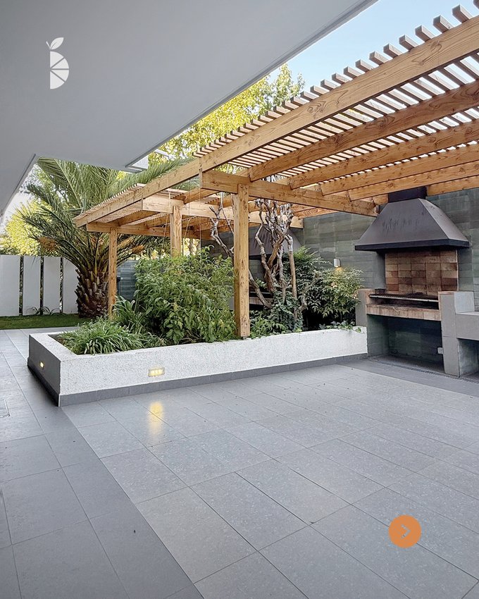 La terraza mira hacia una calle de bajo tráfico rodeada de grandes árboles, lo que entrega privacidad, sombra natural y un ambiente silencioso, ideal para la vida familiar.